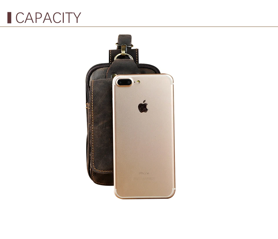 Роскошный толстый кожаный Мужской винтажный дорожный ремень Crazy Horse, дизайнерская Поясная сумочка для мотоциклистов 6,5 дюйма, чехол для телефона мешок, 1609