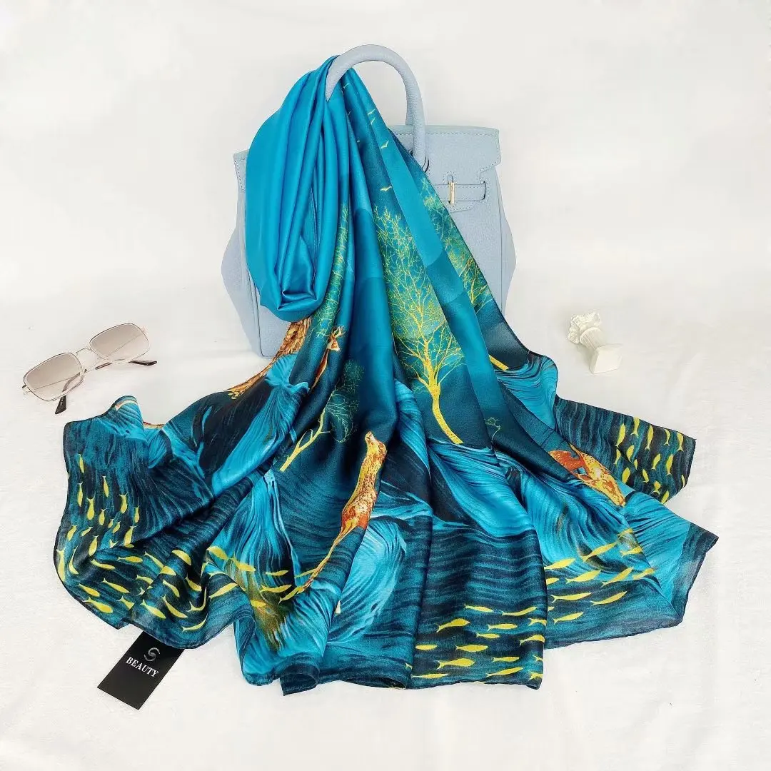 Платок женский Шелковый, 180 х90 см, с волнистым принтом, пляжный хиджаб