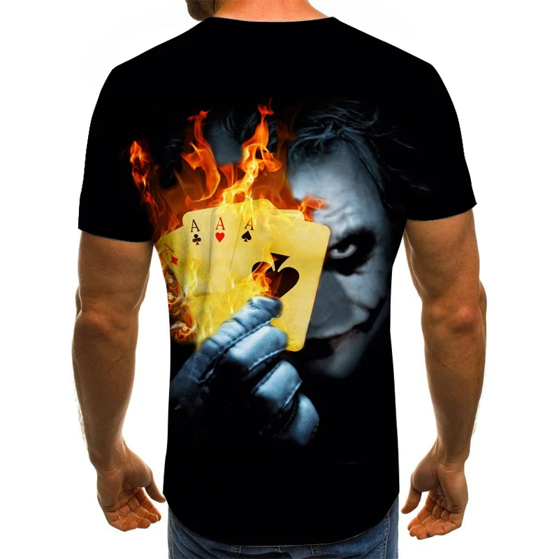 Футболка с принтом игральных карт, лето 2021, модный топ для мужчин и женщин, пуловер с коротким рукавом и 3D-принтом клоуна и круглым вырезом, одежда