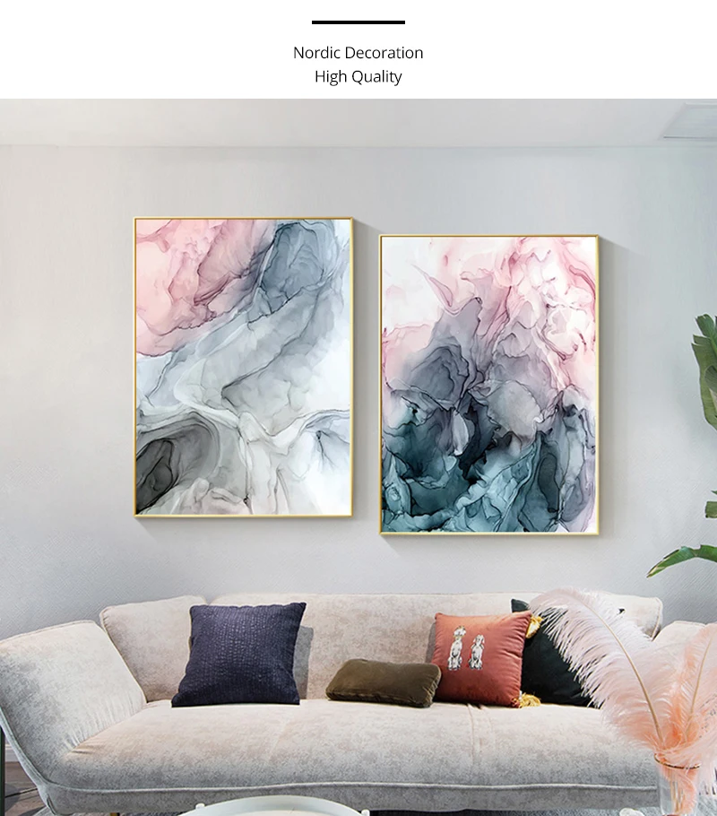 Настенная картина в скандинавском стиле с изображением розового пля...