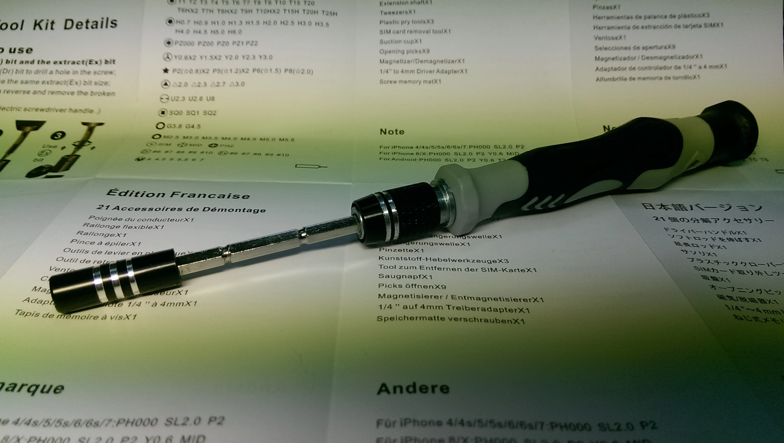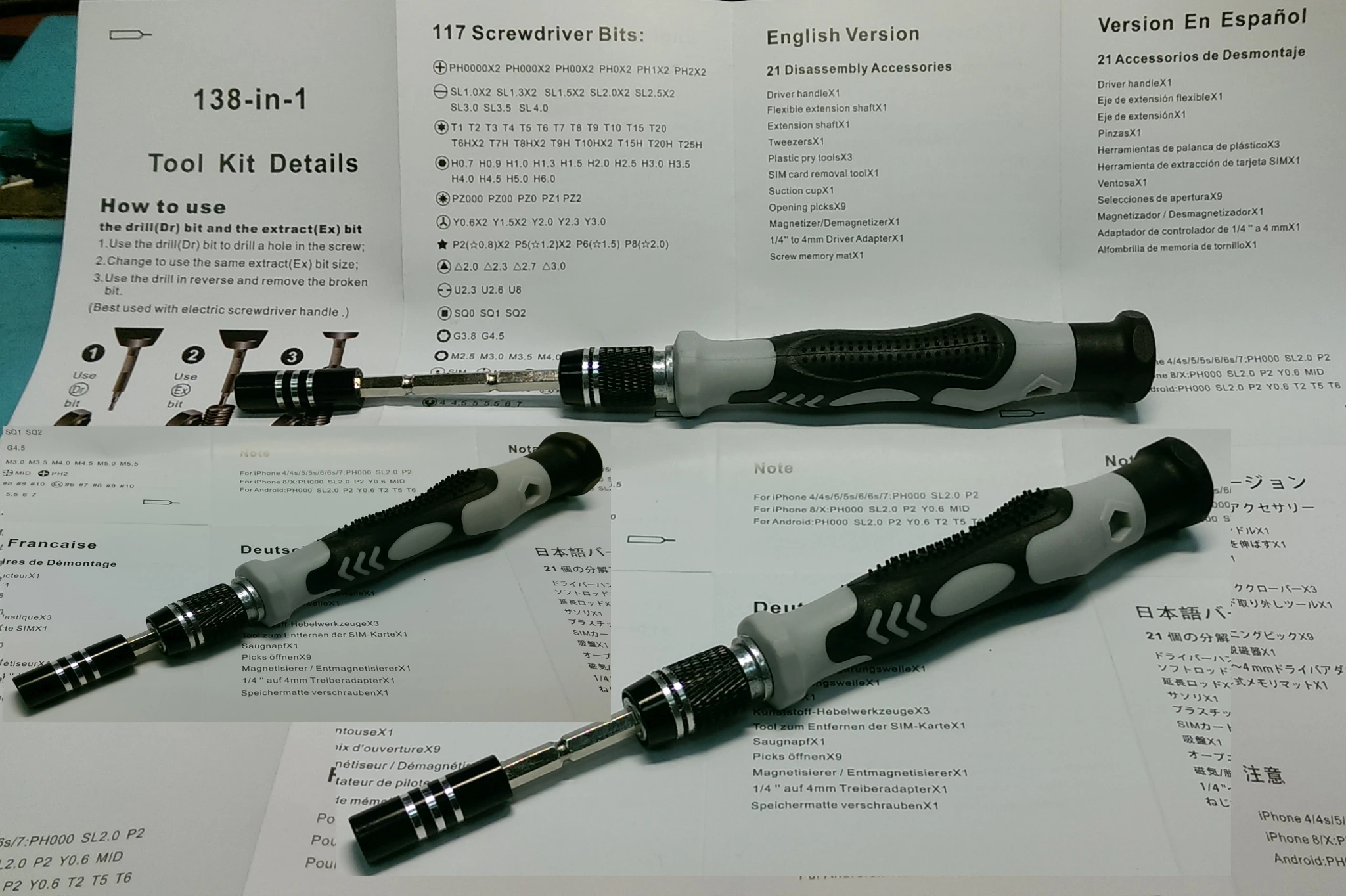 Я любил это! Это так же, как на фотографиях продавца. Честно говоря, это была одна из моих лучших покупок до сих пор. Это будет здорово для нескольких устройств, которые у меня есть, которые я не могу открыть, если это не с отверткой на и или около того *