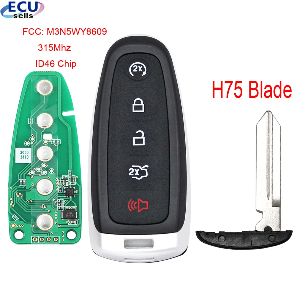 5 кнопок дистанционный смарт ключ-брелок для Ford Edge Escape Expedition C-max Taurus Flex Focus 315 МГц ID46 PCF7953 M3N5WY8609 H75 blade