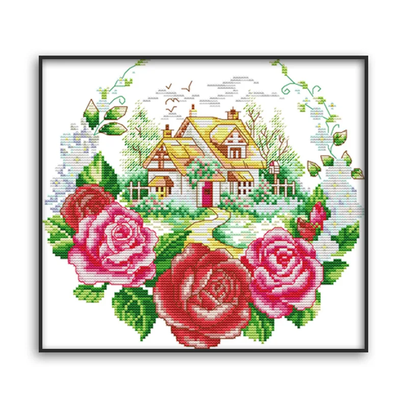 Amishop Вышивка крестом нить Dmc цветок дом с трехмерной аппликацией в виде Спальня украшения ткани эстетическое вышивка Картины