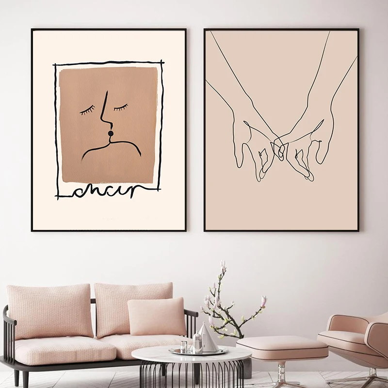 Pinky синтезированный рисунок одна линия Художественная печать минималистский парный любовь Декор современное настенное Искусство Холст Живопись Домашний декор плакат спальня
