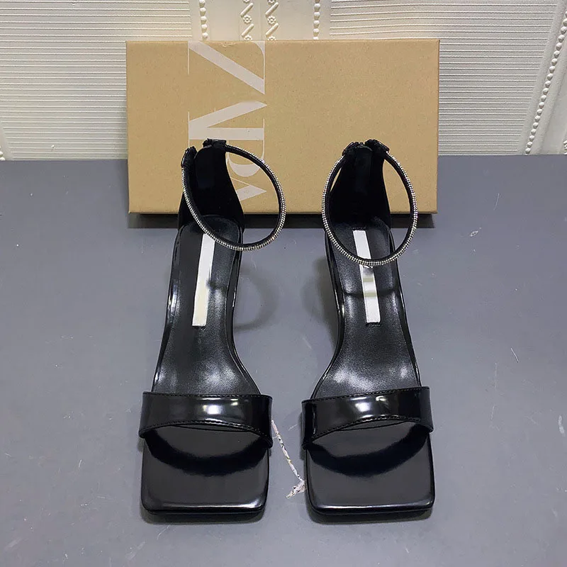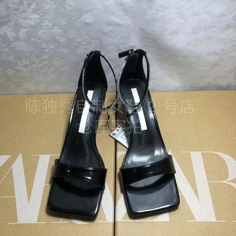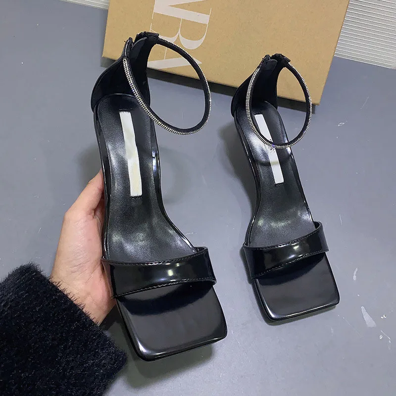 Летние босоножки с ремешком на щиколотке и кристаллами; Коллекция 2021 года; Женская обувь с квадратным носком на шпильке; Сказочные босоножки на молнии