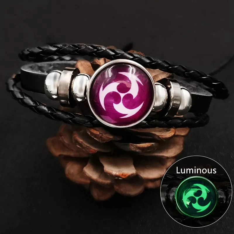 Браслет Genshin Impact кожаный с имитацией глаза Божия, воды, ветра...