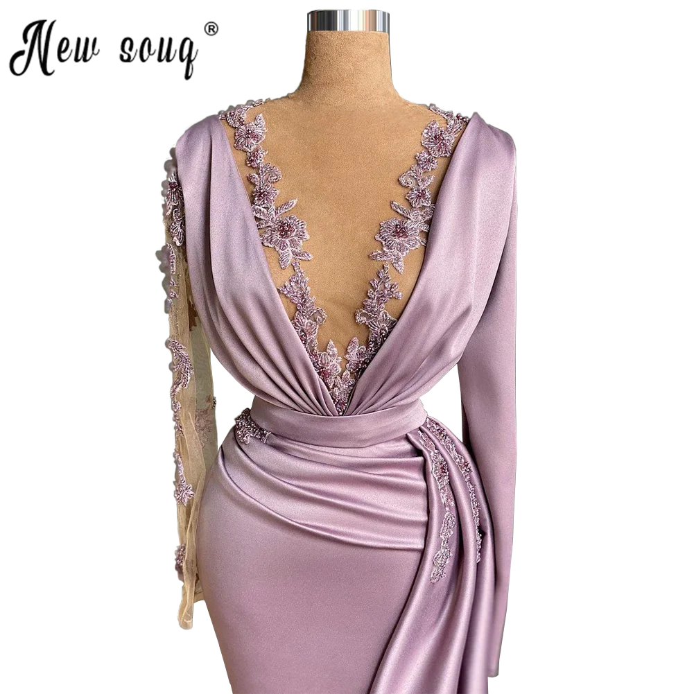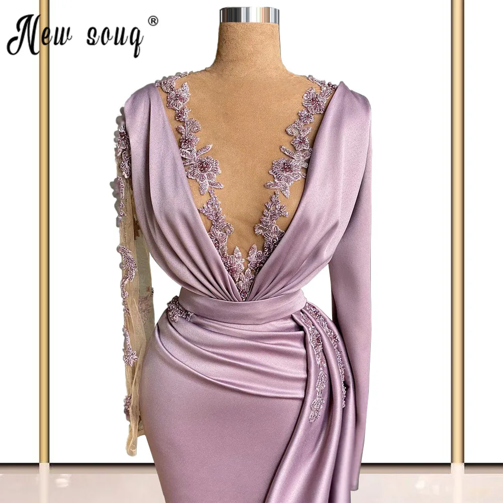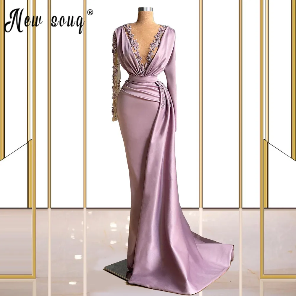 Фиолетовые бисерные вечерние платья с v-образным вырезом для свадьбы, 2021 г., Саудовская Аравия, новые официальные платья знаменитостей, Дубай, платье для выпускного вечера, Vestido
