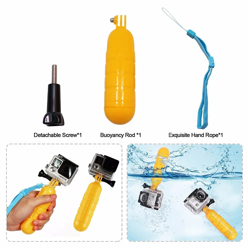 Совместимость: этот продукт на 100% совместим со всеми экшн-камерамиВес: 52 гЦвет: желтыйРазмеры: 155 мм высота (прибл.)Fuction: чтобы сохранить camear при падении в воду, легко найти егоИдеально подходит для: серфинга/дайвинга/плавания