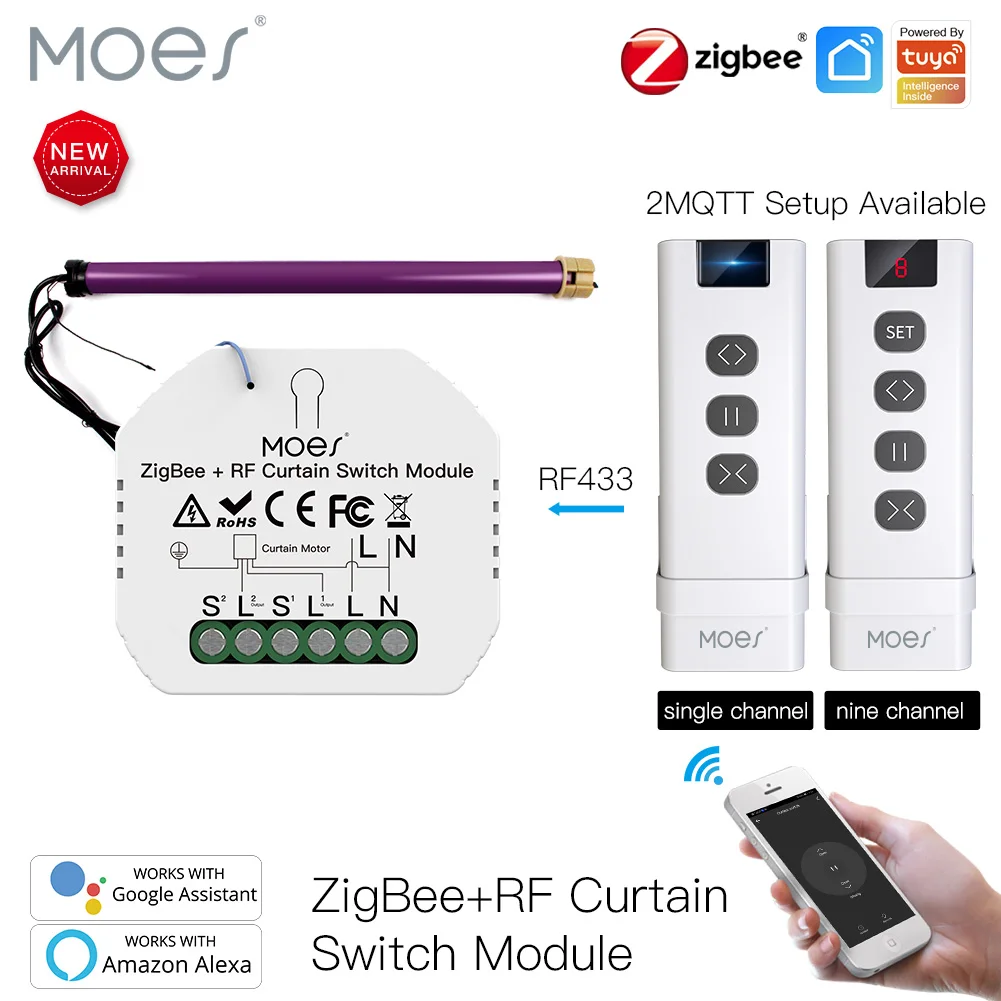 Умный модуль переключателя Moes ZigBee RF433 для штор, устройство для самостоятельной сборки, работает с приложением Alexa Google Home
