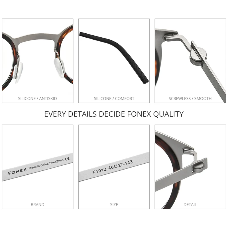 FONEX Мужская и женская круглая оправа, винтажная оправа из ацетатного сплава без винтов для очков для коррекции близорукости, модель F1012 в Корейском стиле
