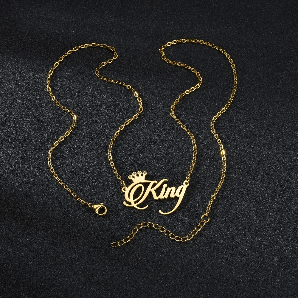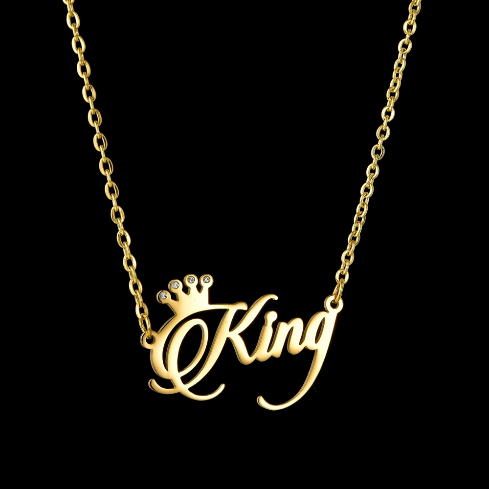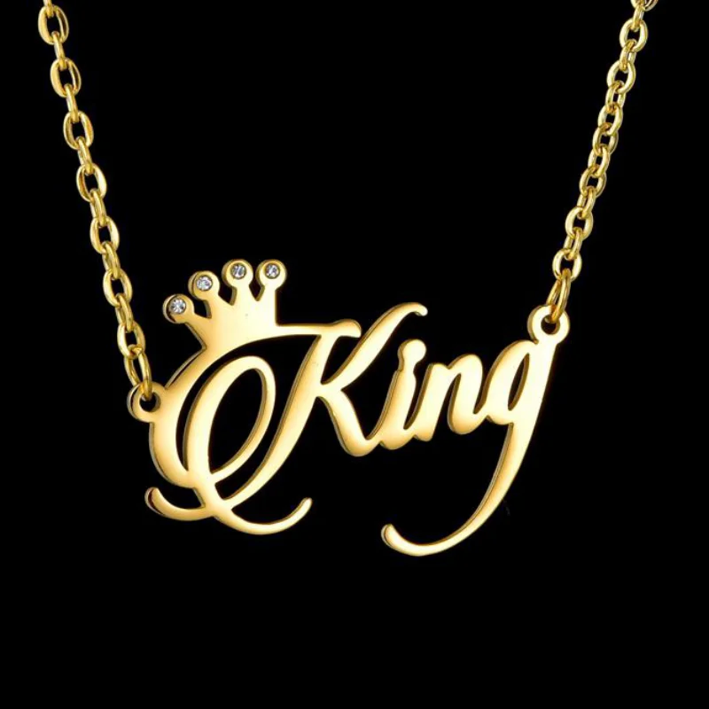 Ожерелья с именем на заказ из нержавеющей стали, кулон с короной и ...
