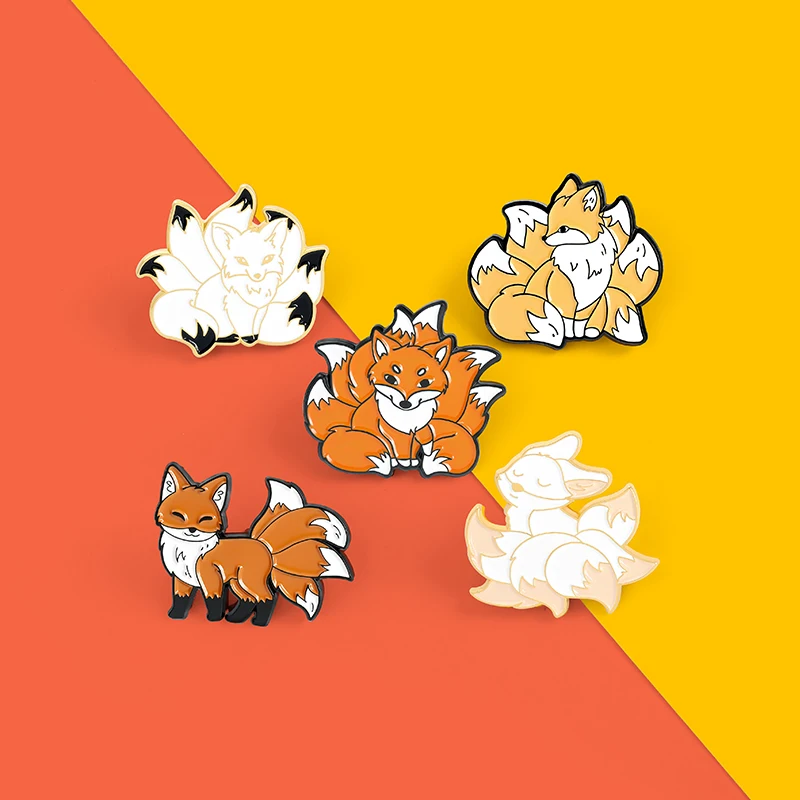 Броши с лисой Kitsune, девять хвостов, пушистая красная лиса, эмалированная заколка, лесное животное, украшения на джинсы год, для рубашек, сумок, милые подарки