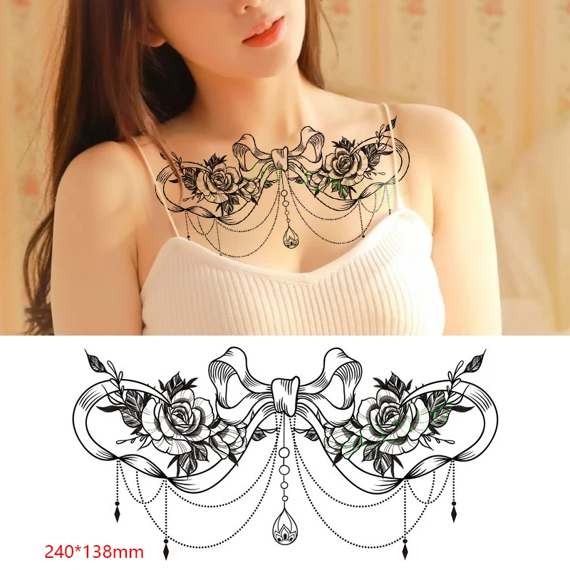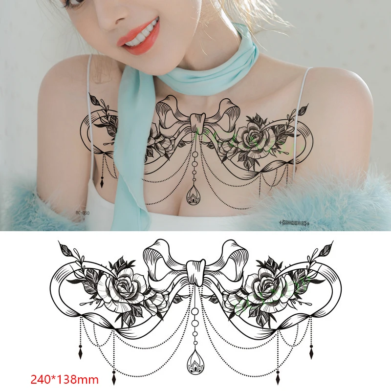 Водостойкая Временная тату-наклейка, бант, цветы, милая хна, талия, грудь на спине, тату для груди, флэш-тату, искусственные татуировки для женщин