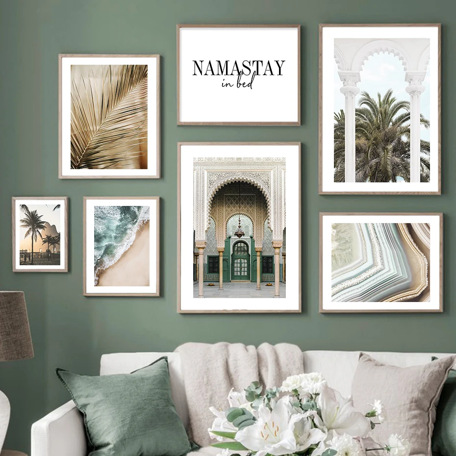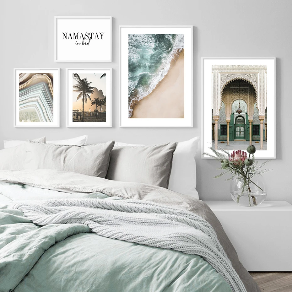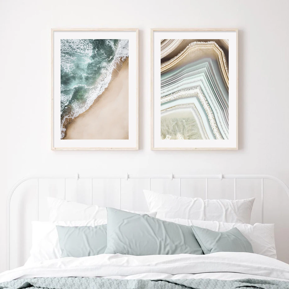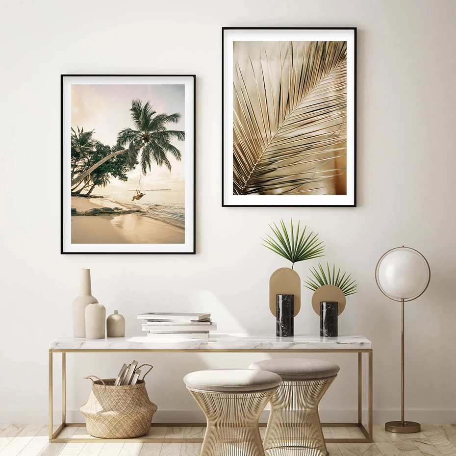 Современный Красивый плакат с агатом, листьями пальмы, морской пейзаж, картины на холсте, настенные картины, художественные картины для спальни, украшение для дома