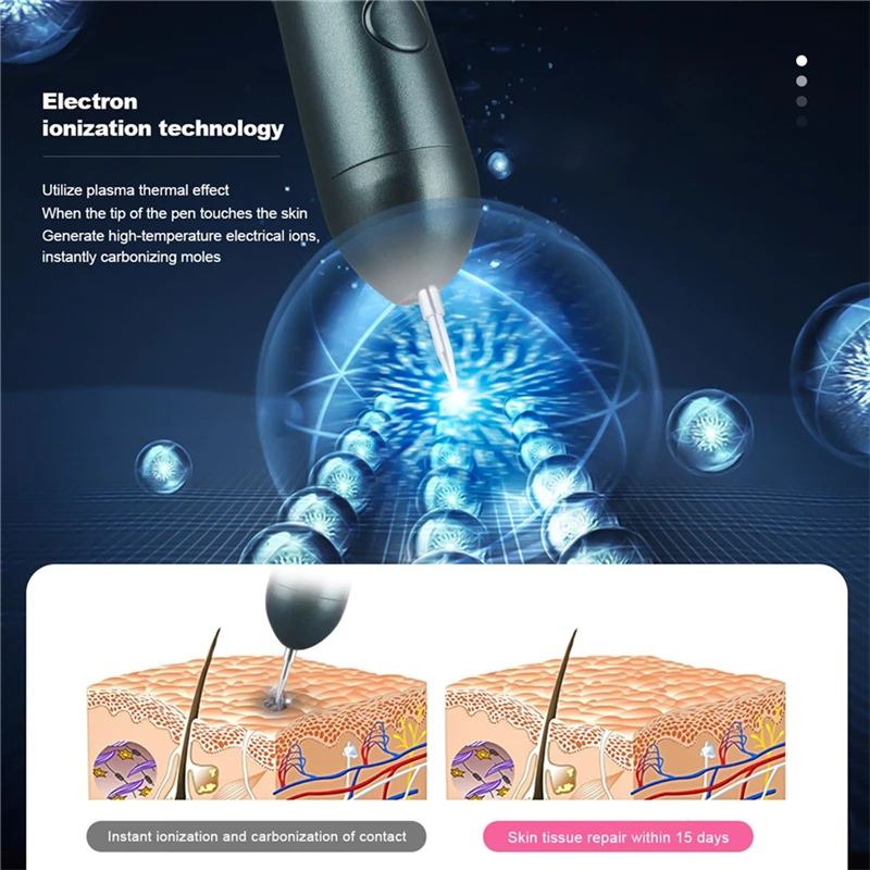 Подходит для: ①. Технология электронной ионизации, с использованием плазменного теплового эффекта, когда кончик пера касается кожи, высокотемпературные электрические ионы генерируются, чтобы мгновенно карбонизировать моль на коже. Физическое Удаление родинок безопасно, без побочных эффектов, без тока, без раздражения.