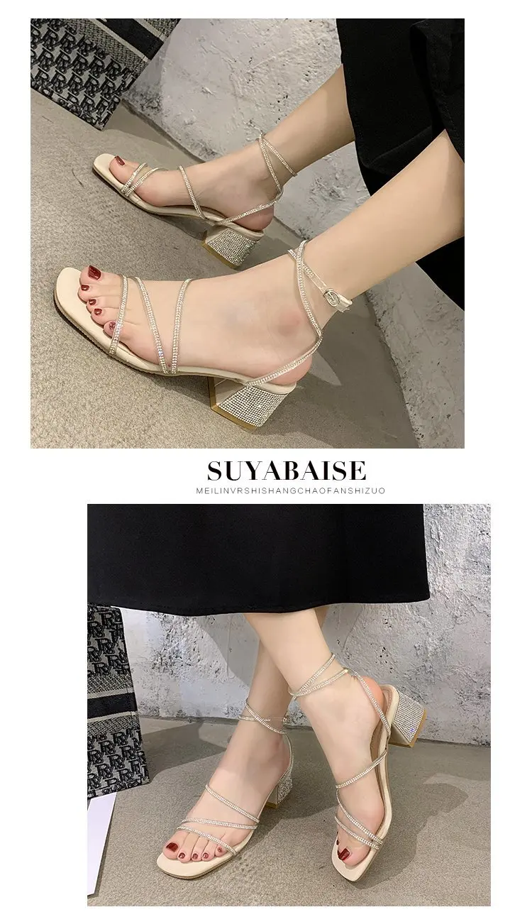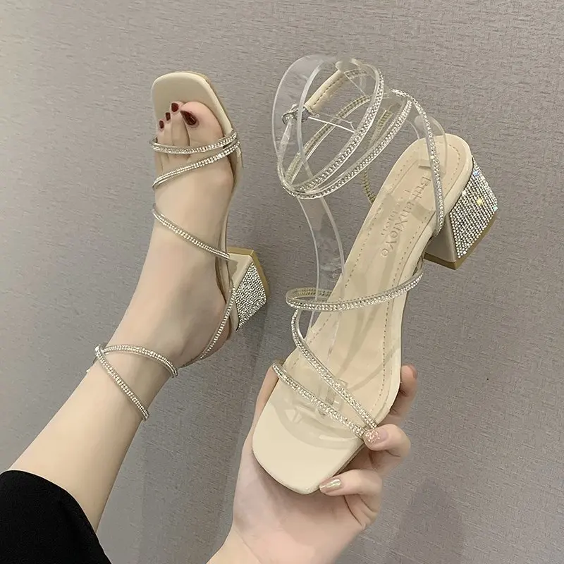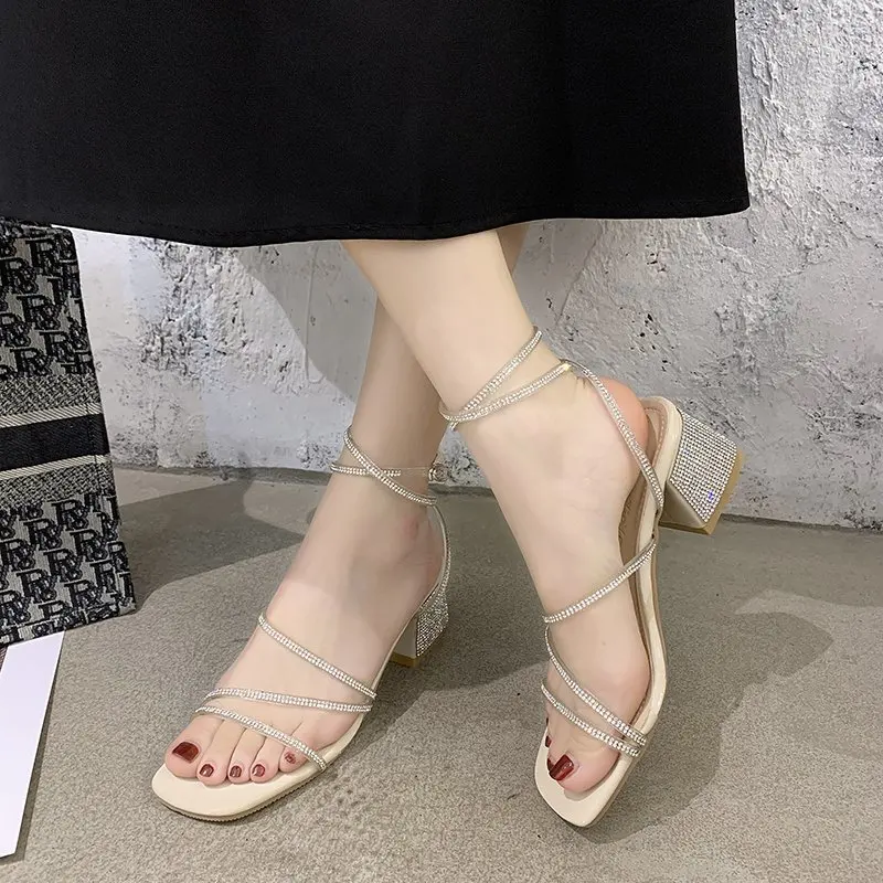 2021 женские босоножки; Летние классические стильные модные женские босоножки на среднем каблуке с перекрестной шнуровкой
