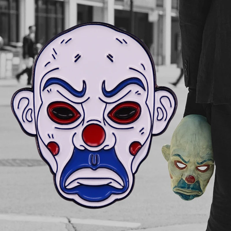 Брошь с эмалью в виде маски клоуна Heath Ledger Joker Bank Robber Классическая Брошь с изображением фильма значок