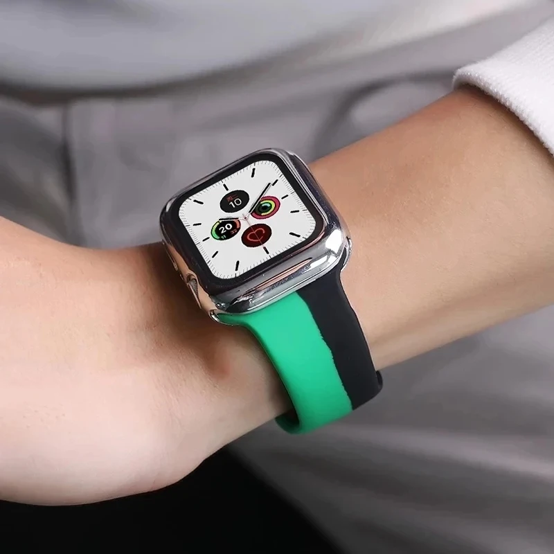 Ремешок силиконовый для Apple Watch band, черный спортивный браслет для смарт-часов, iWatch series 4 5 6 SE 7, 45 мм 41 мм 44 мм 40 мм 38 мм 42 мм