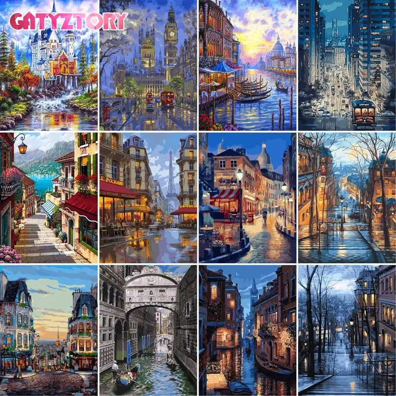 GATYZTORY полная квадратная алмазная живопись городской пейзаж 5D DIY мозаичная картина, выполненная в технике алмазной вышивки искусство комплекты, украшение для дома
