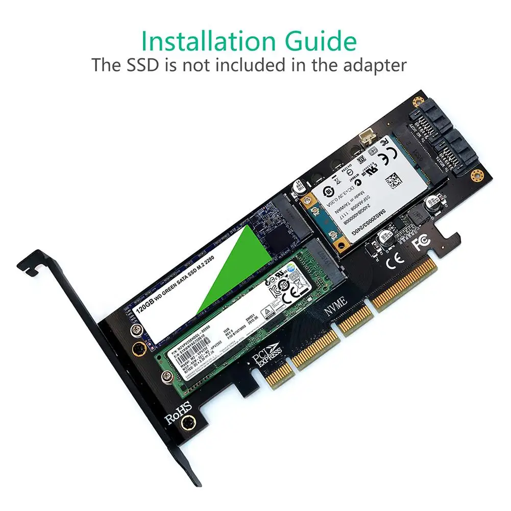 Адаптер 3 в 1 mSATA M.2 PCIE NVMe SSD к PCI-E 3,0 4X SATA 3,0 для M...