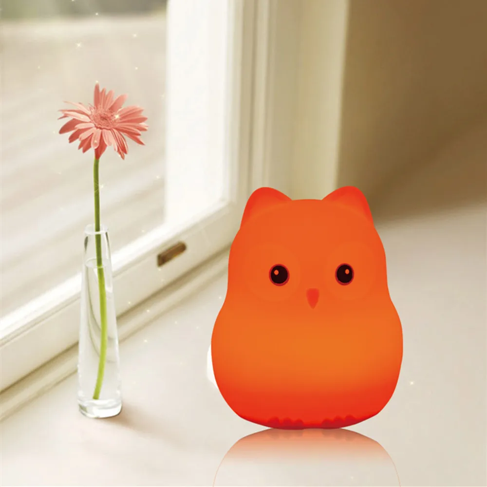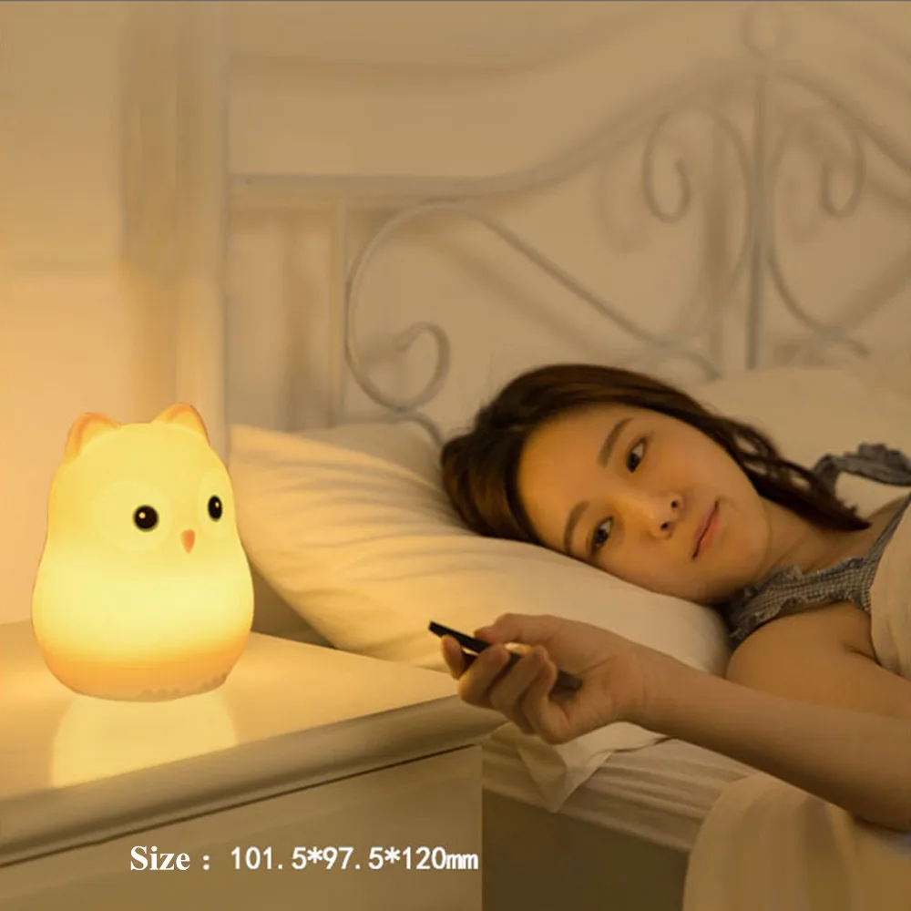 Силиконовый Ночной светильник с птицей, бегемотом и совой, сенсорный датчик, дистанционное управление, RGB LED, с регулируемой яркостью, таймер, USB, перезаряжаемая детская настольная лампа