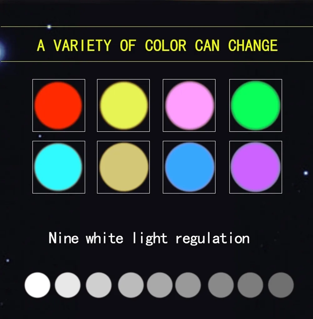 Light Modes(Touch Tap)Dim/Bright White,RGB Gradient,8 Colors Changing,8 Colors Pause