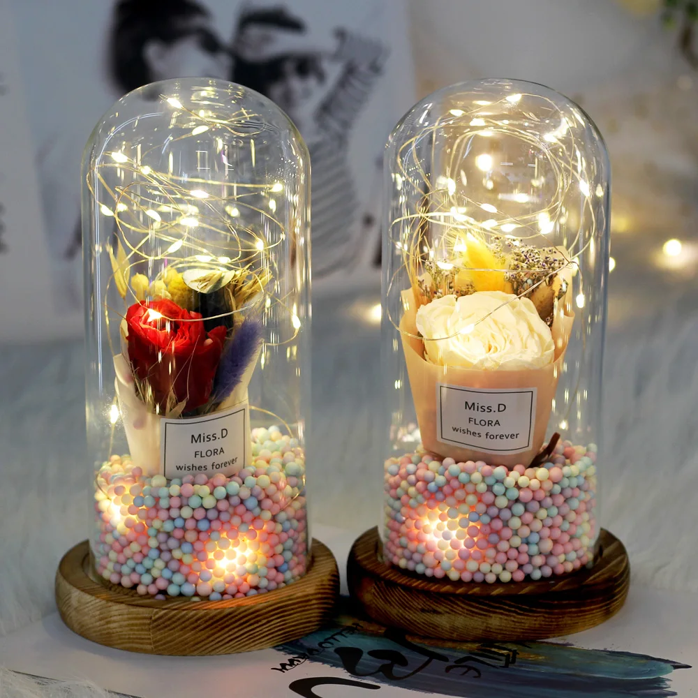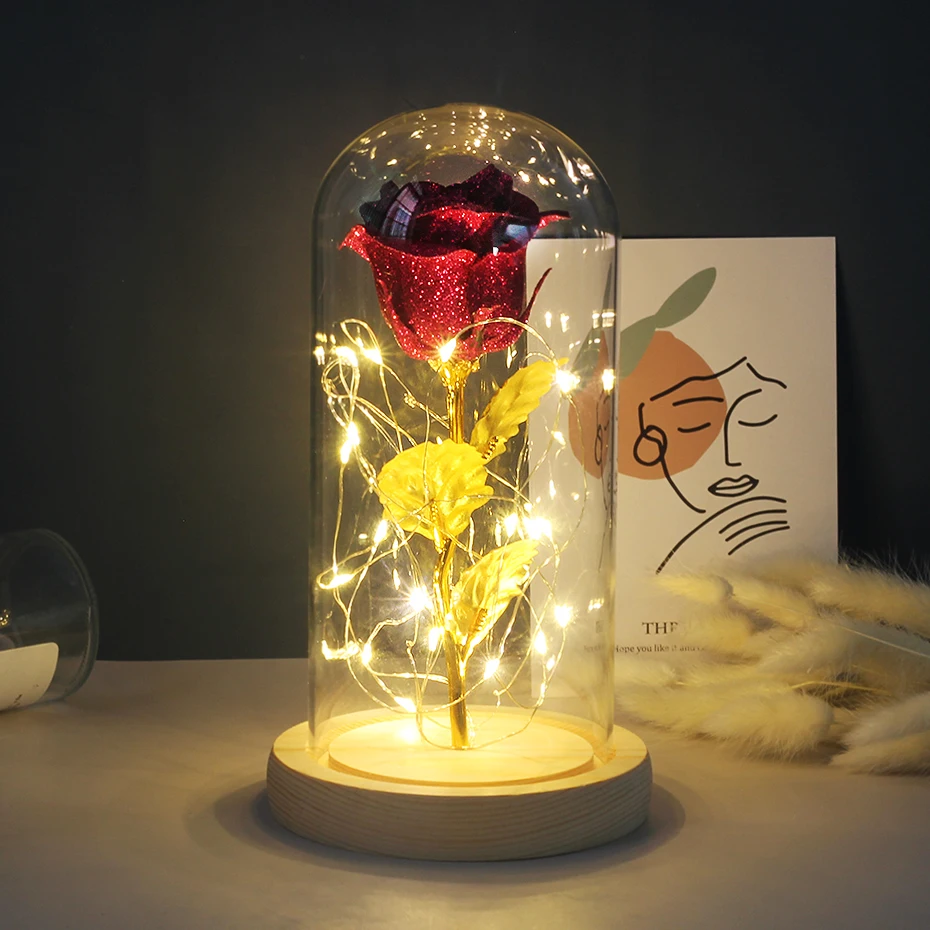 Роза де ла Галаксия encantada de 2021 светодиодный, цветок де Ламина дорада 24K с guirnalda de luces en quula para regalo de San Valen
