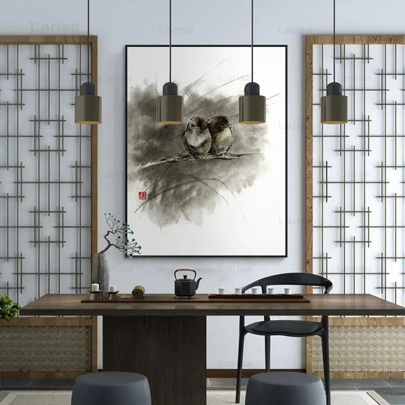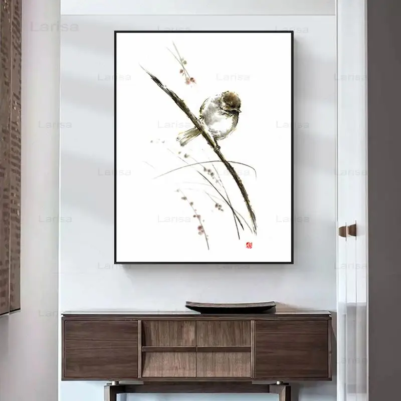 Современная Минималистичная Китайская Картина на холсте с чернилами дзен, Настенная роспись, картина с рисунком птицы, лотоса, постер, настенное искусство, домашний декор