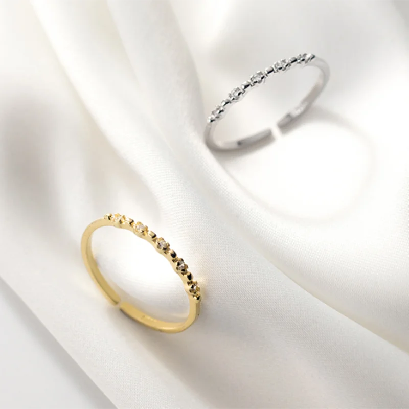 Женское открытые, кольца на палец из настоящего серебра 925 пробы с кристаллами фианита