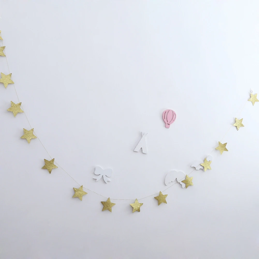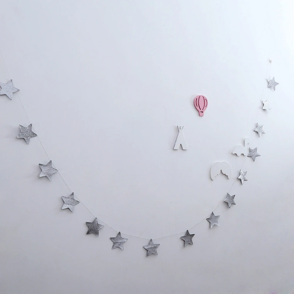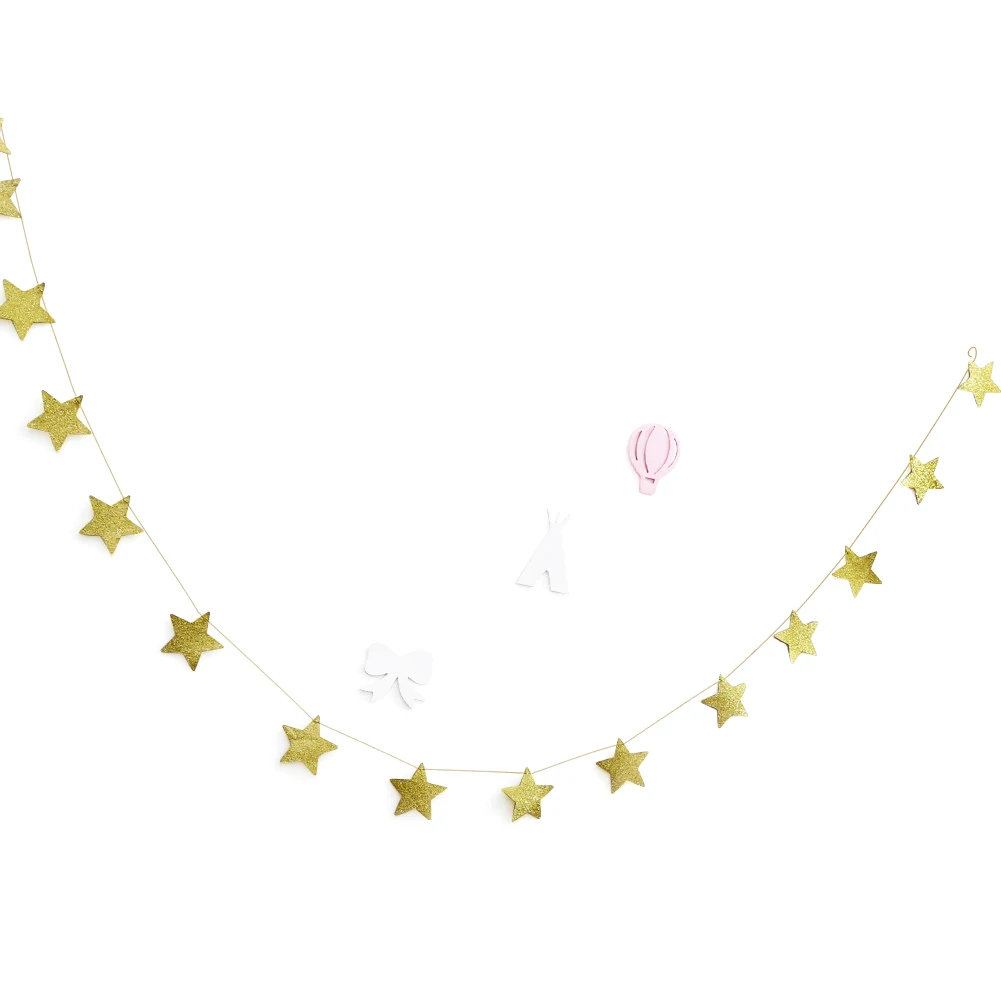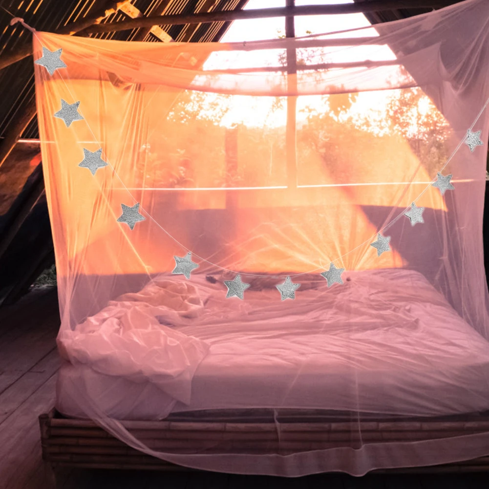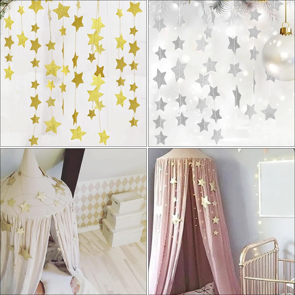Висячая Декоративная гирлянда со звездами золотого и серебряного цвета, идеальная сияющая гирлянда со звездами, флажки для украшения детской комнаты, москитные сетки