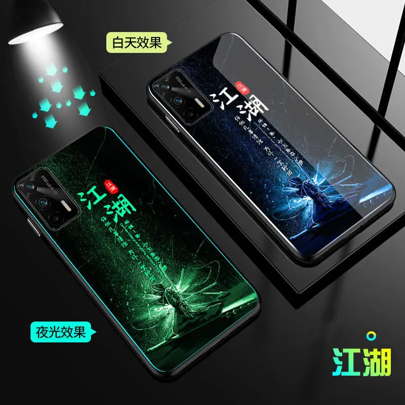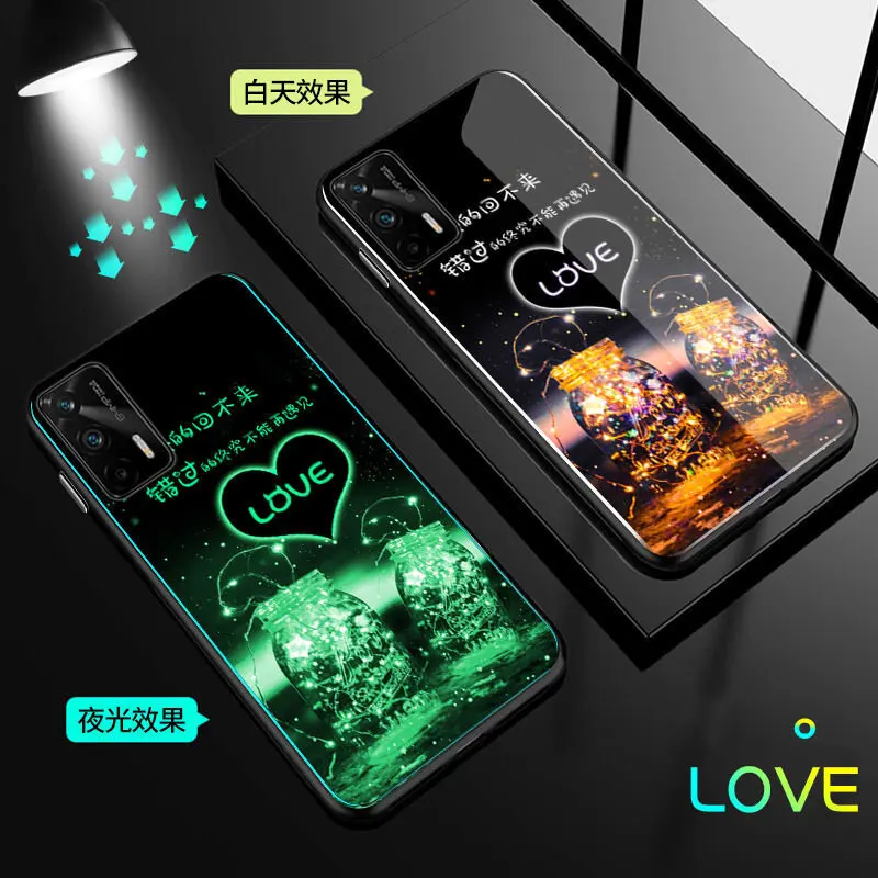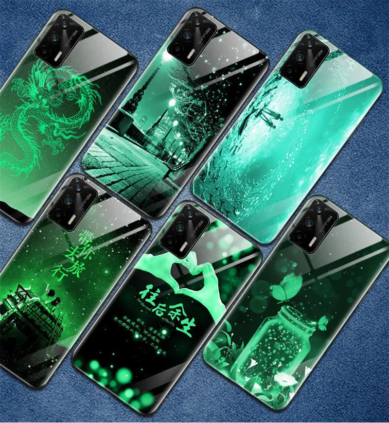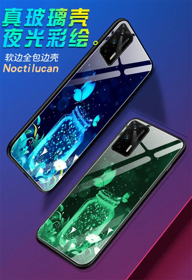 Чехол-накладка для OPPO Realme GT 5G, из закаленного стекла, светящийся в темноте, 5G, силиконовый