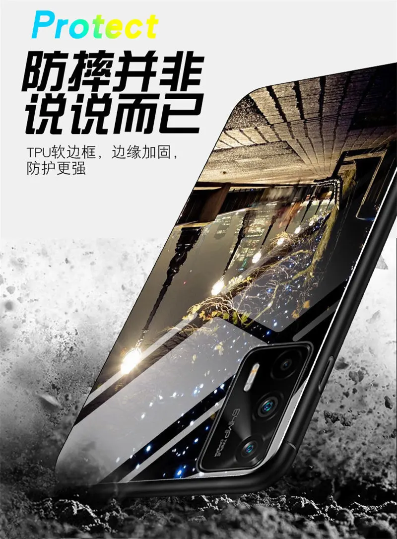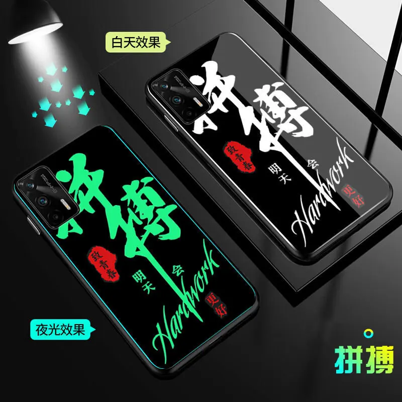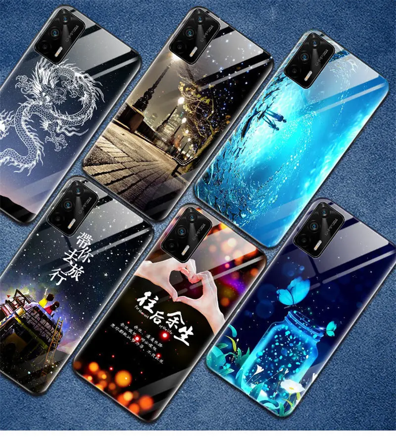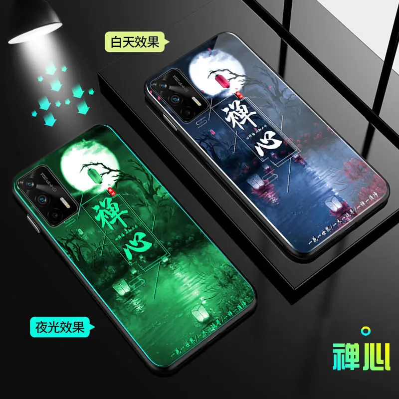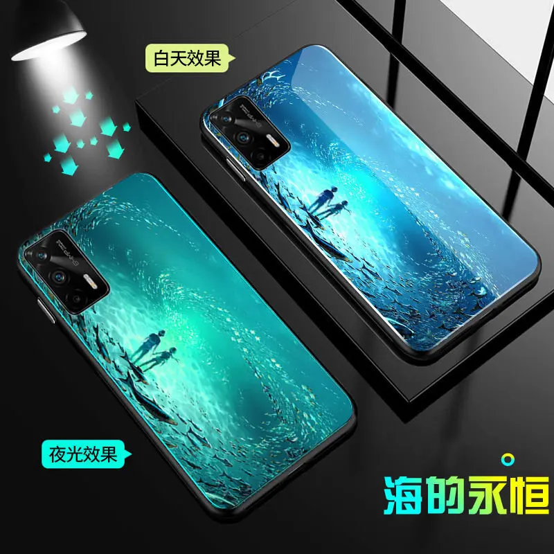 Чехол-накладка для OPPO Realme GT 5G, из закаленного стекла, светящийся в темноте, 5G, силиконовый