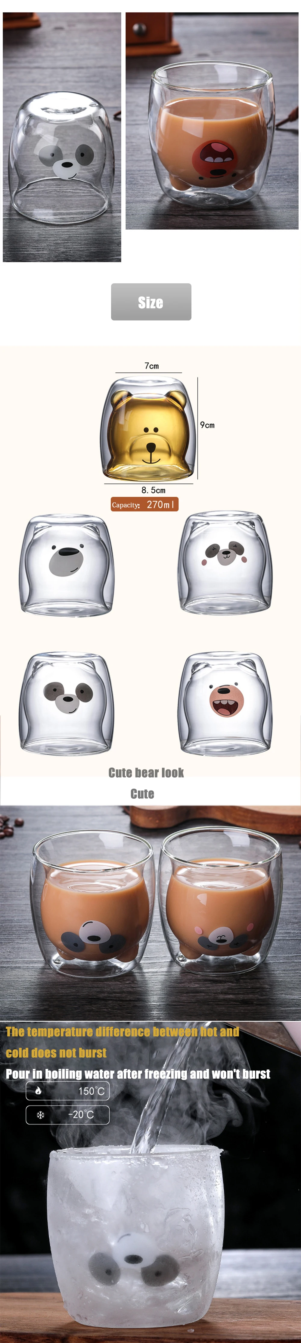 270 мл стеклянная кружка с двойными стенками, милые кружки в форме ...