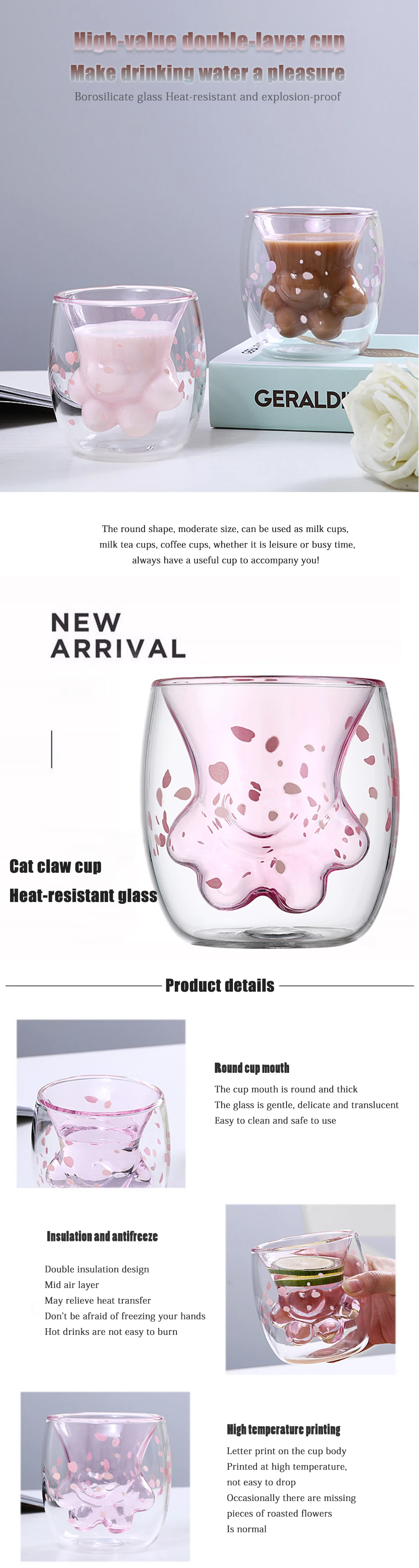 Стеклянная чашка с кошачьими когтями, стеклянная чашка с двойным дном, кавайная Хрустальная чашка для дома и офиса, кофе, посуда для завтрака, лучший подарок, фестиваль