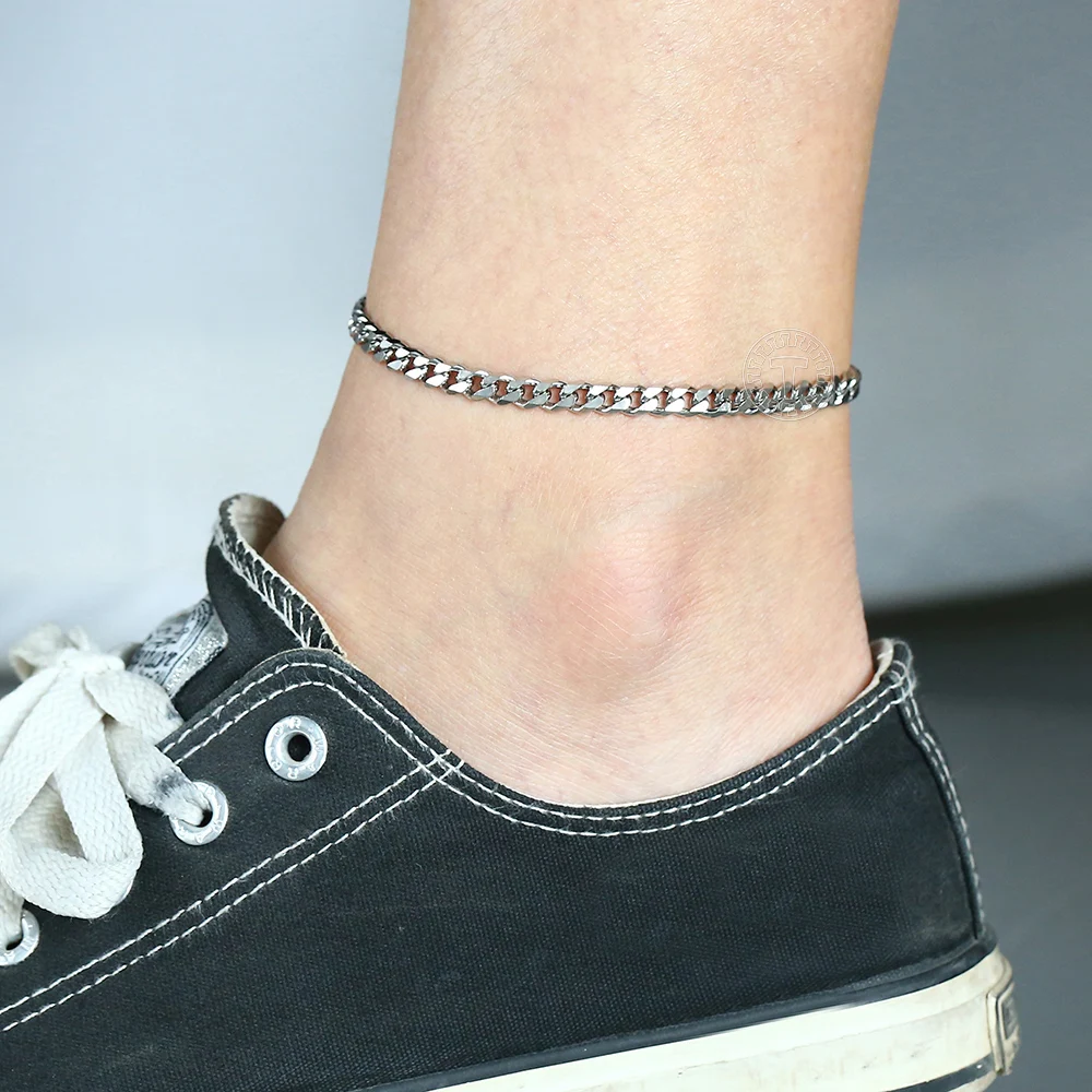 Женский ножной браслет 357 мм из нержавеющей стали, цепочка из куби...
