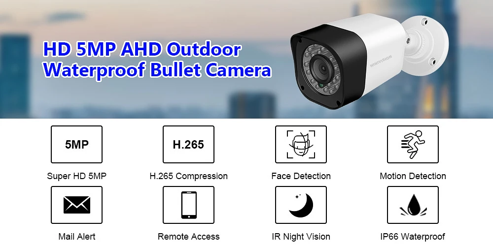 1, Ультра HD 5 Мп дисплей высокой четкости;2. Ультра HD 5MP AHD камера, IP66 водонепроницаемый, подходит для внутреннего и наружного использования; Надежная Домашняя безопасность;3. Улучшенное H.265 Сжатие видео, подключи и работай, простота установки;4. Поддержка распознавания лица, записи лица, воспроизведения лица, обеспечивает ультра высокое разрешение видео наблюдения, обеспечивая максимальную детализацию и четкость доступны;5. Поддержка IR-CUT переключателя двойного фильтра, днем и ночью для достижения мониторинга, цвет не является частичным искажением цвета;6. Поддержка расстояния передачи составляет 500 метров, Ультра HD дневное ночное видение;7. Поддержка обнаружения движения, оповещения по электронной почте, воспроизведения видео;8. Поддержка Android,Iphone,Ipad, ПК, P2P просмотра;9, удаленный доступ в любом месте, в любое время;