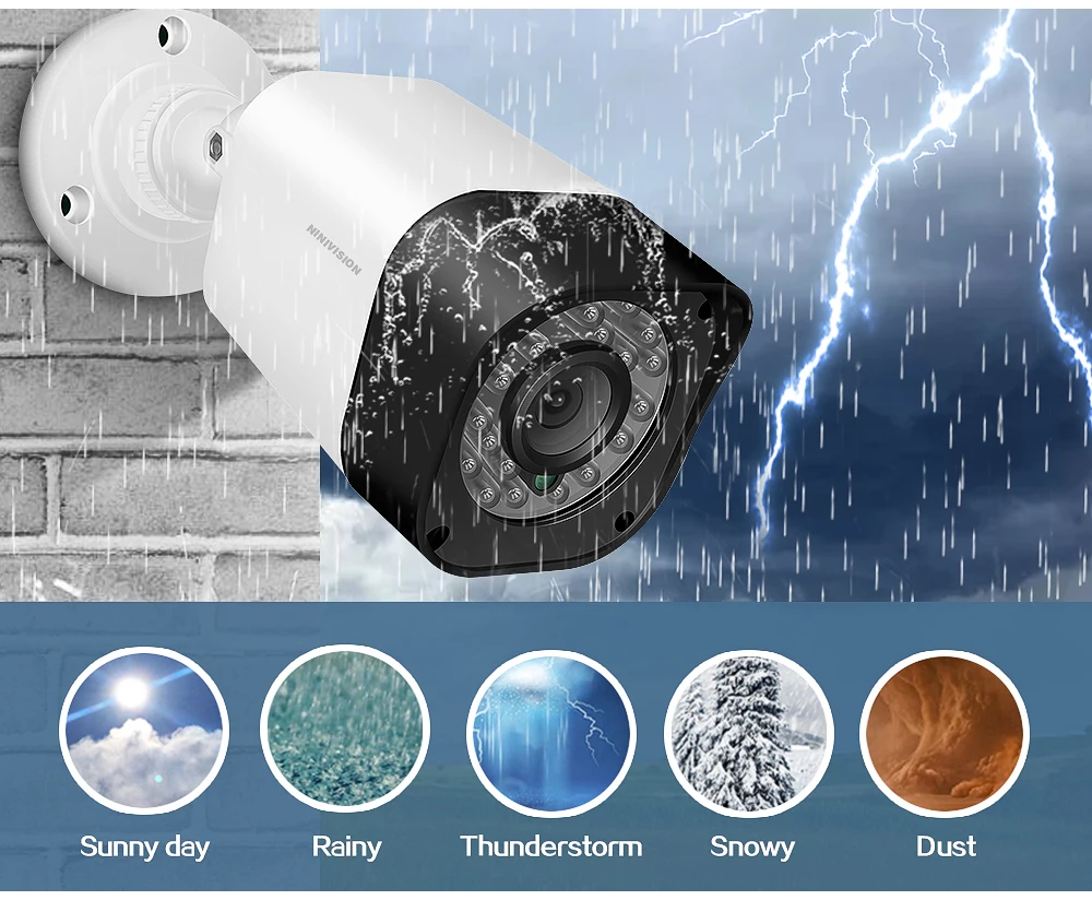 Камеры способны выдержать все, что приносит мама природа, таким образом держать вне пыли, воды и воздуха. В жаркие, морозные или дождливые дни,Они придерживаются своих позиций, как верные солдаты, что приносит вам сильное чувство безопасности.