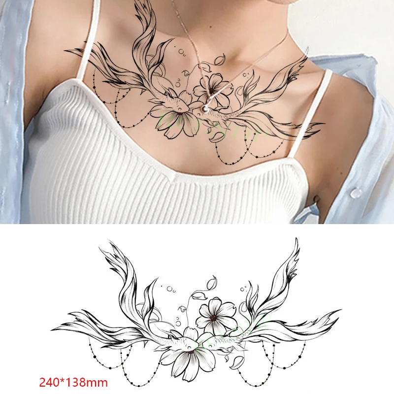 Водостойкая временная татуировка, наклейка, золотой Рыбка, цветок, жизненная сила, милая грудь на спине, тату для груди флэш-тату, искусственные татуировки для женщин