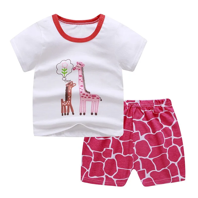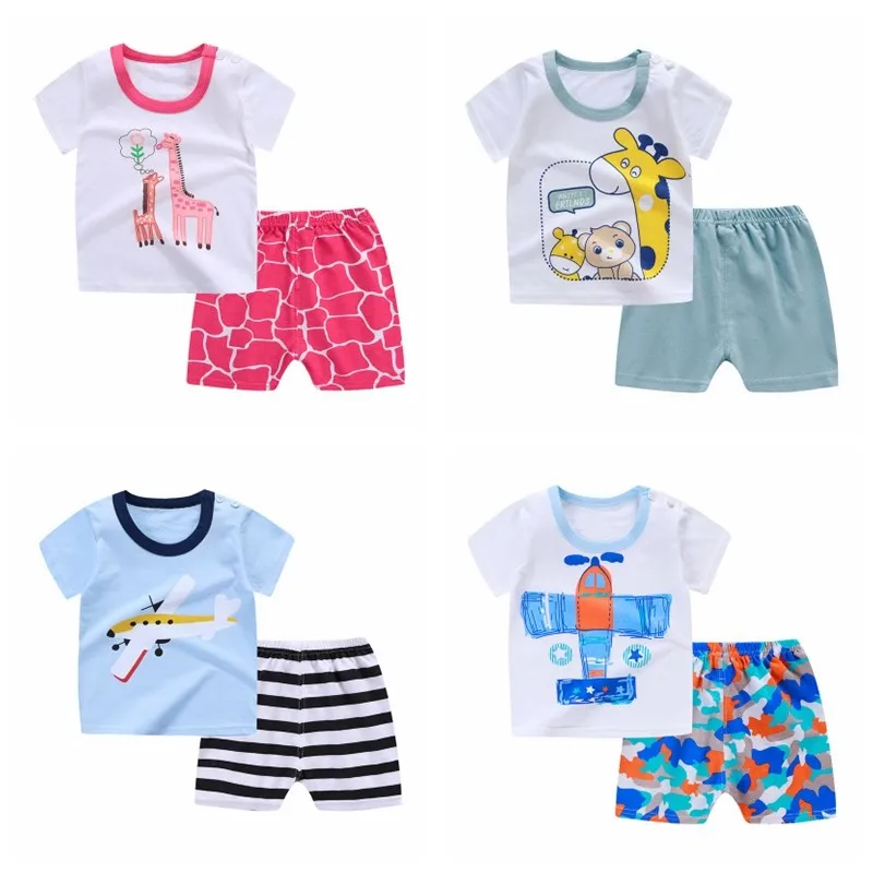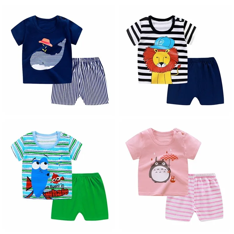 Летняя одежда, Детский костюм, хлопковая футболка с коротким рукавом, детский Тонкий комплект из 2 предметов, одежда для маленьких девочек, одежда для маленьких мальчиков 2021