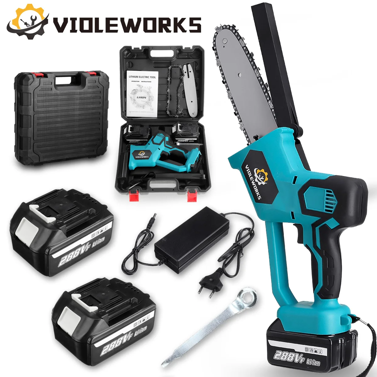 Электрическая пила, портативная бесщеточная бензопила 8 дюймов 288 в с 2 аккумуляторами в пластиковой коробке