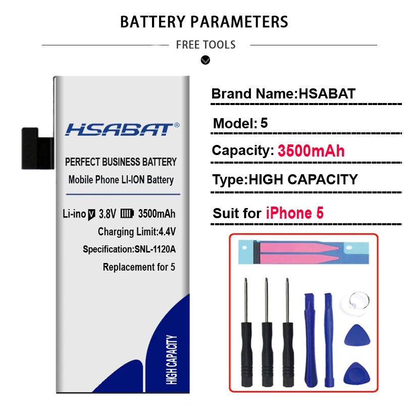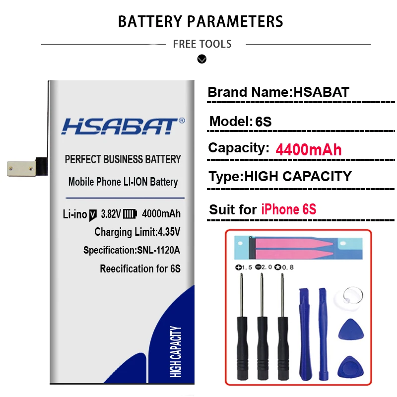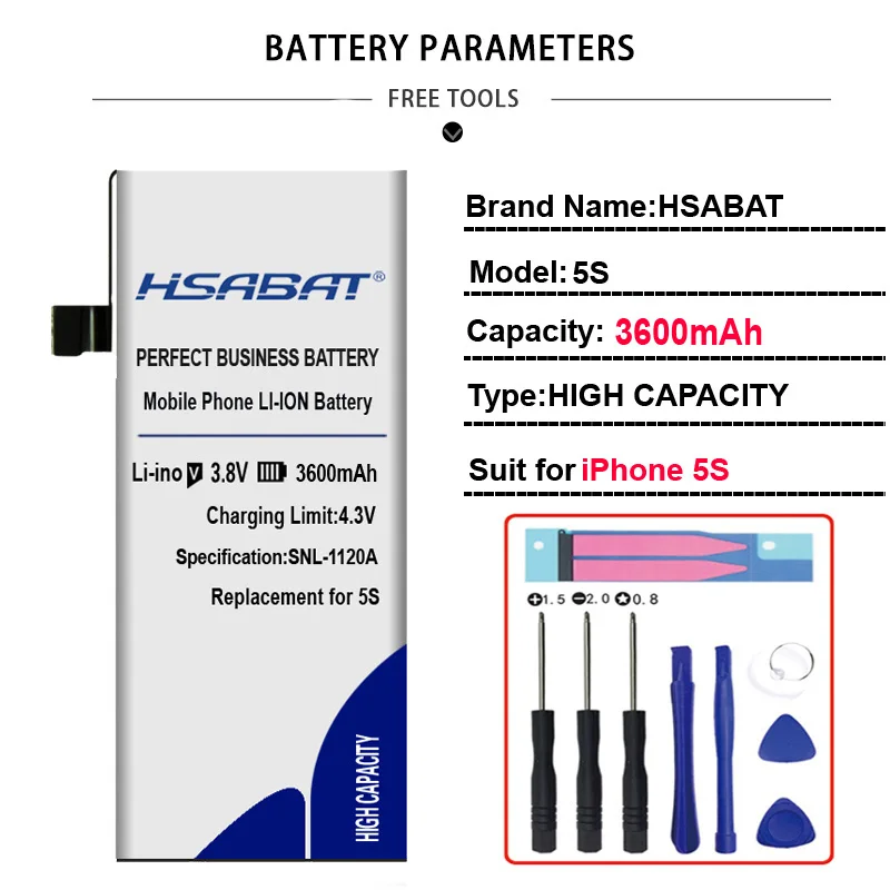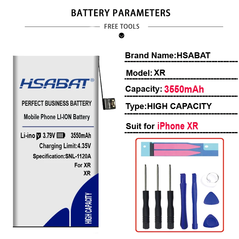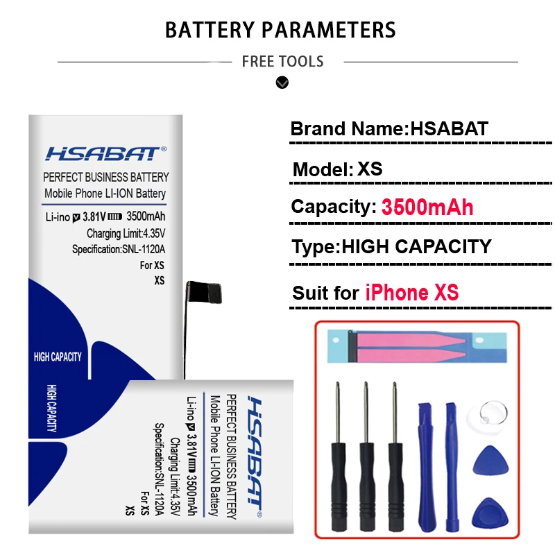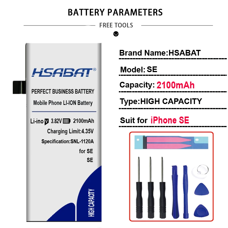 Аккумулятор HSABAT для iPhone X, XS, XR, 3GS, SE 4, 100%, 5, 4S, 5C...