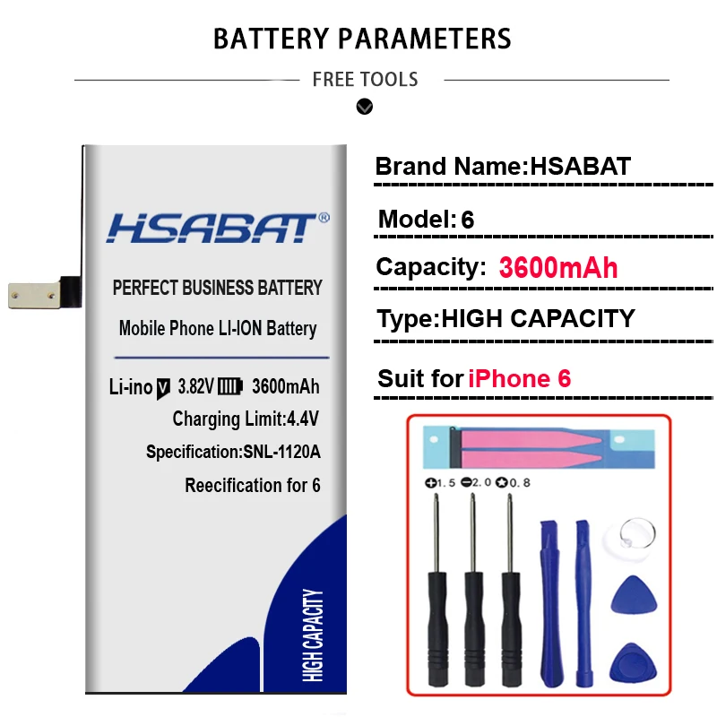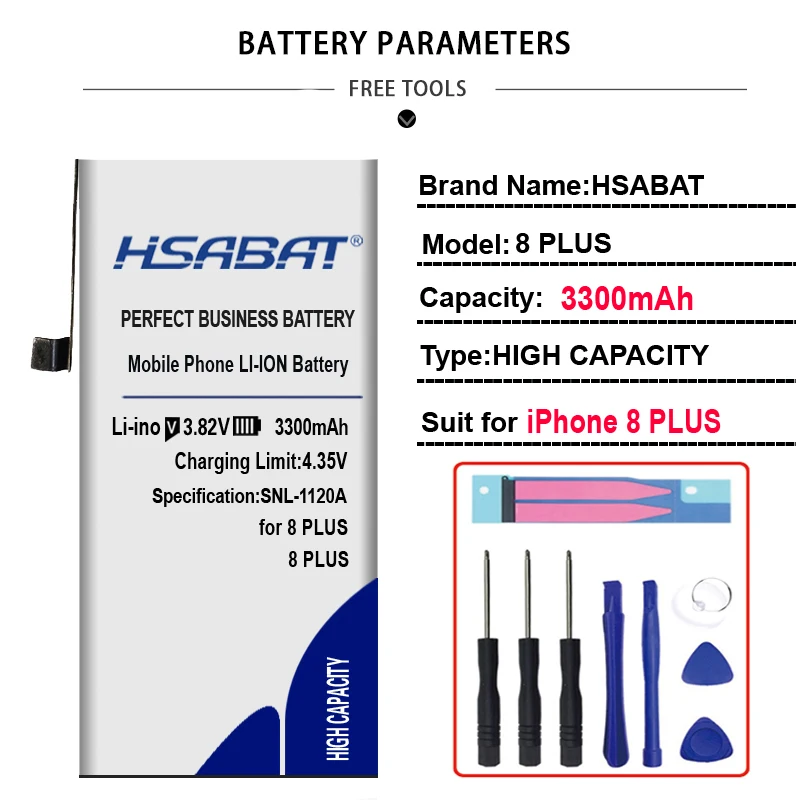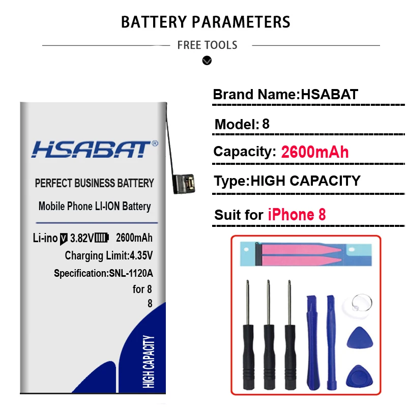 Аккумулятор HSABAT 0 цикл 2 шт.лот 80 мАч для iphone i7 i8 i9s i10 ...