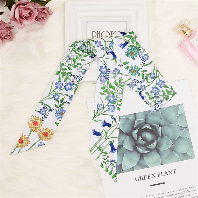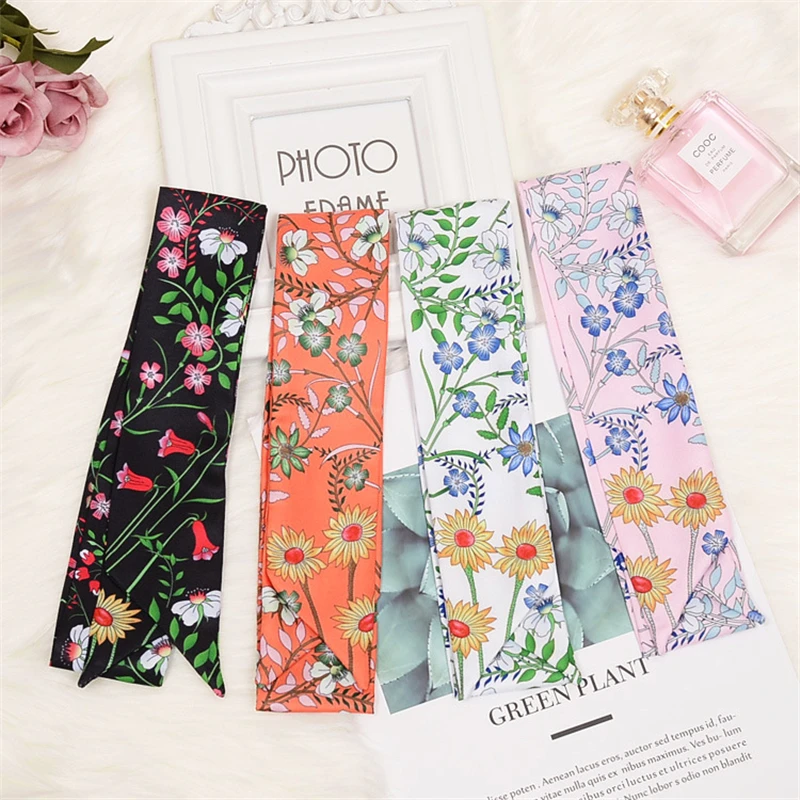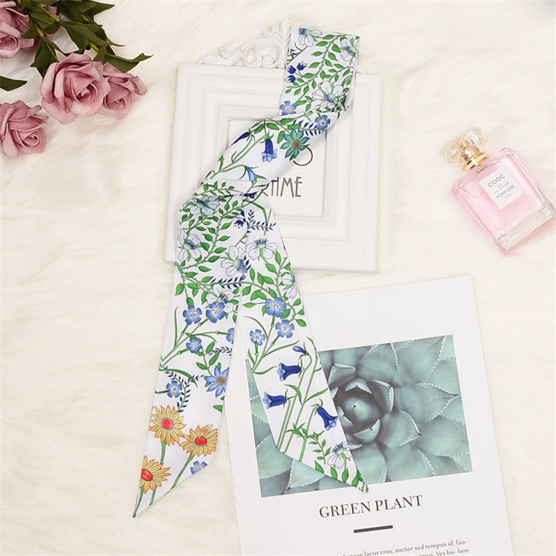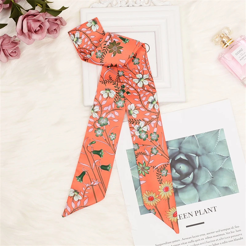 Весенний женский шарф, роскошные шелковые шарфы из искусственного шелка, Завязывающиеся сумки, маленькие Ленточные шарфы, повязки для волос, повязки на руку BS18