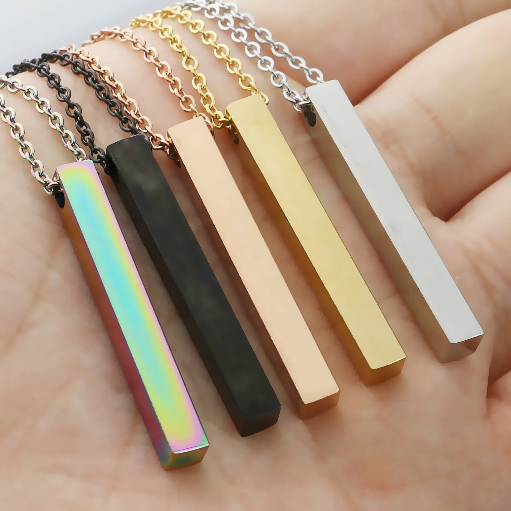 Ожерелье из нержавеющей стали для мужчин и женщин, простая Длинная цепочка, прямоугольная подвеска, массивный чокер для пар, хороший подарок