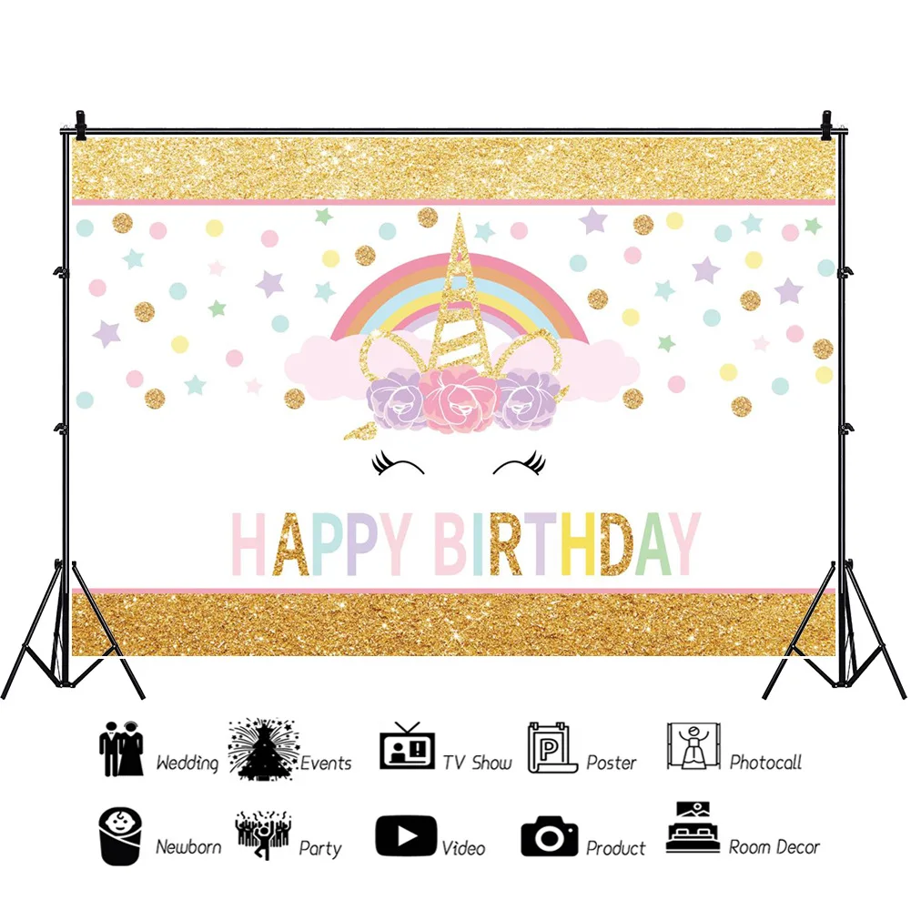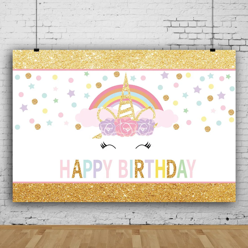 Виниловый фон для детской фотосъемки с изображением Золотой радуги фон с единорогом