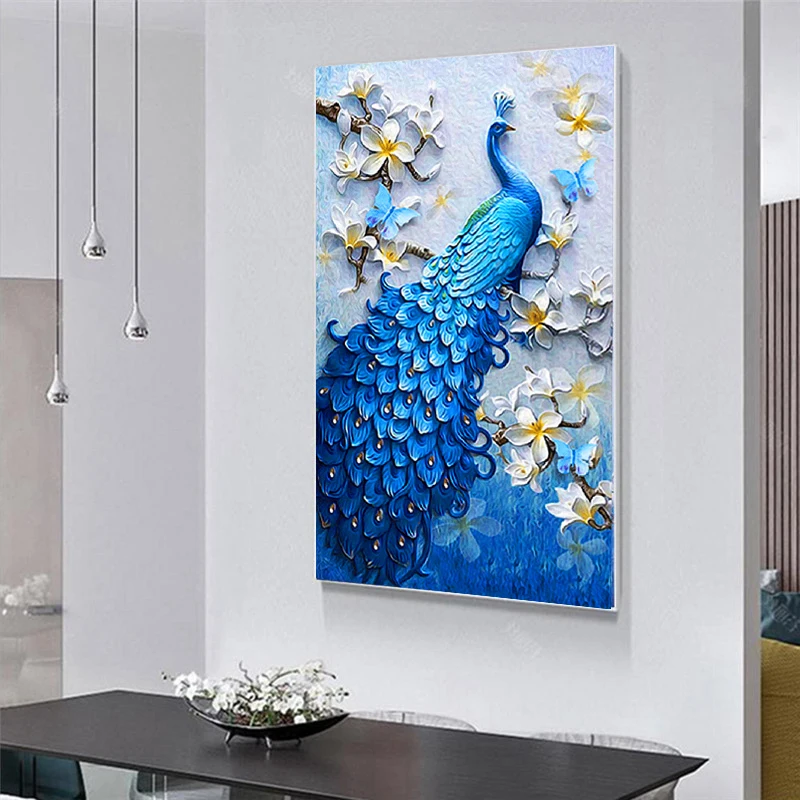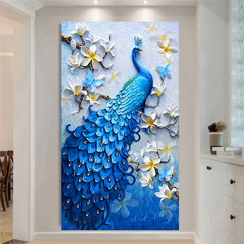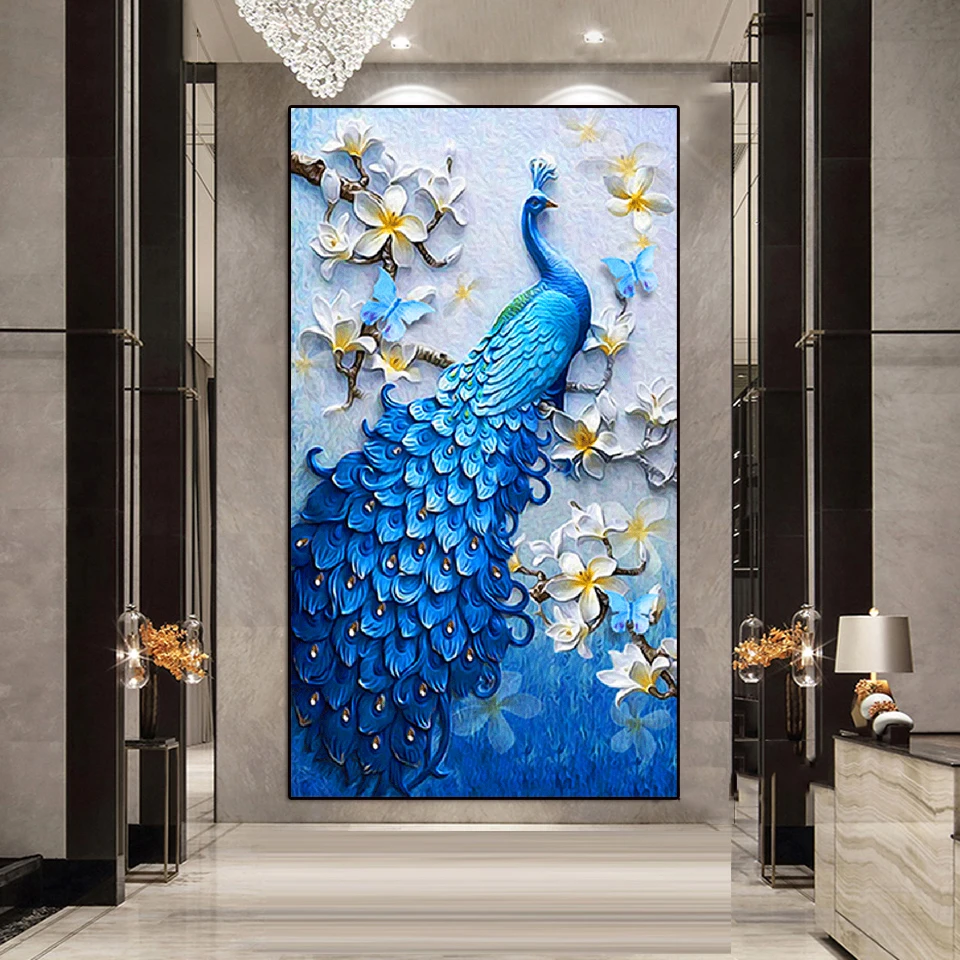 Алмазная картина "павлин цветок", квадратнаякруглая, 5D, для домашнего декора