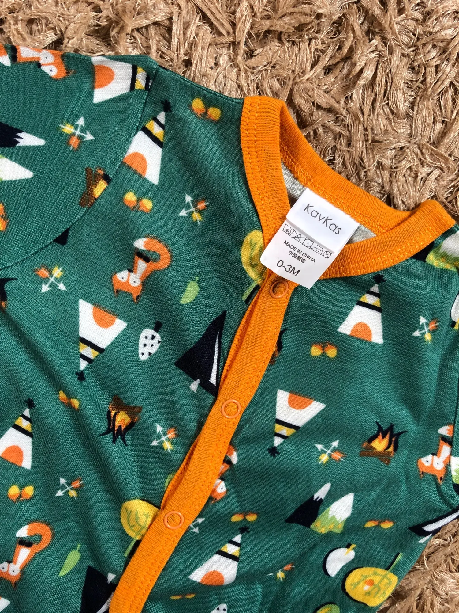 симпатичный костюмчик, не знаю на сколько будет удобно одевать, кнопочки сзади. не понравилось что внутри была пристроченны 2 этикетки, на сколько знаю малышам всегда снаружи пристрачивают чтоб ничего не давило, и малышу было комфортно.