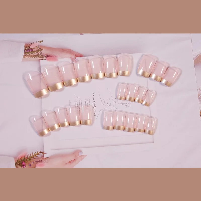 GAM-BELLE, 24 шт.компл., телесный, элегантный, французский, поддельные ногти, золотые кончики, квадратная форма, нажмите на ногти для девочек, полные кончики для ногтей, искусственные губки