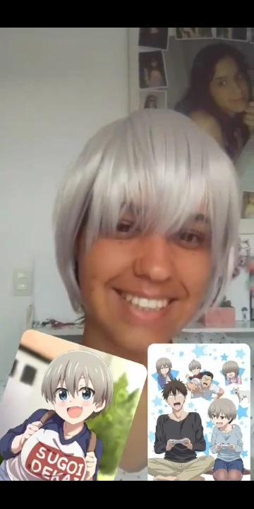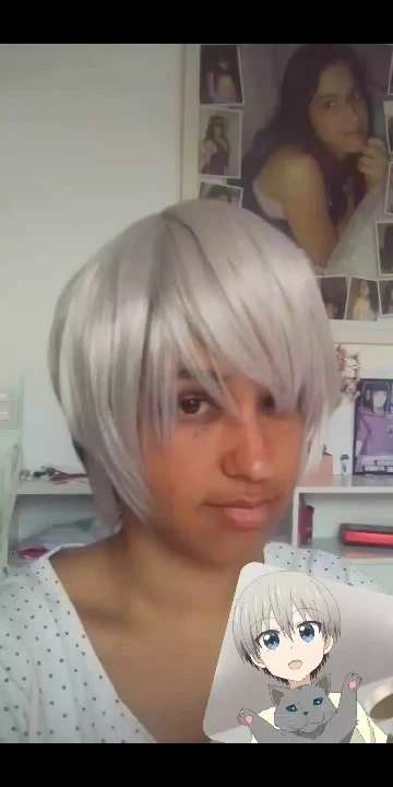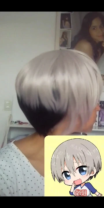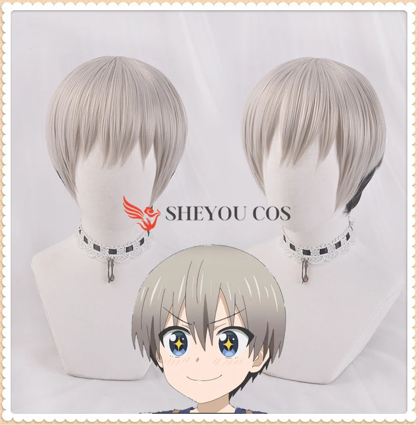Узаки-Чан хочет отдыхать! Hana Uzaki Wig Косплей узаки-Чан хочет играть! Короткий парик для Хэллоуина серый черный градиентный Синтетический