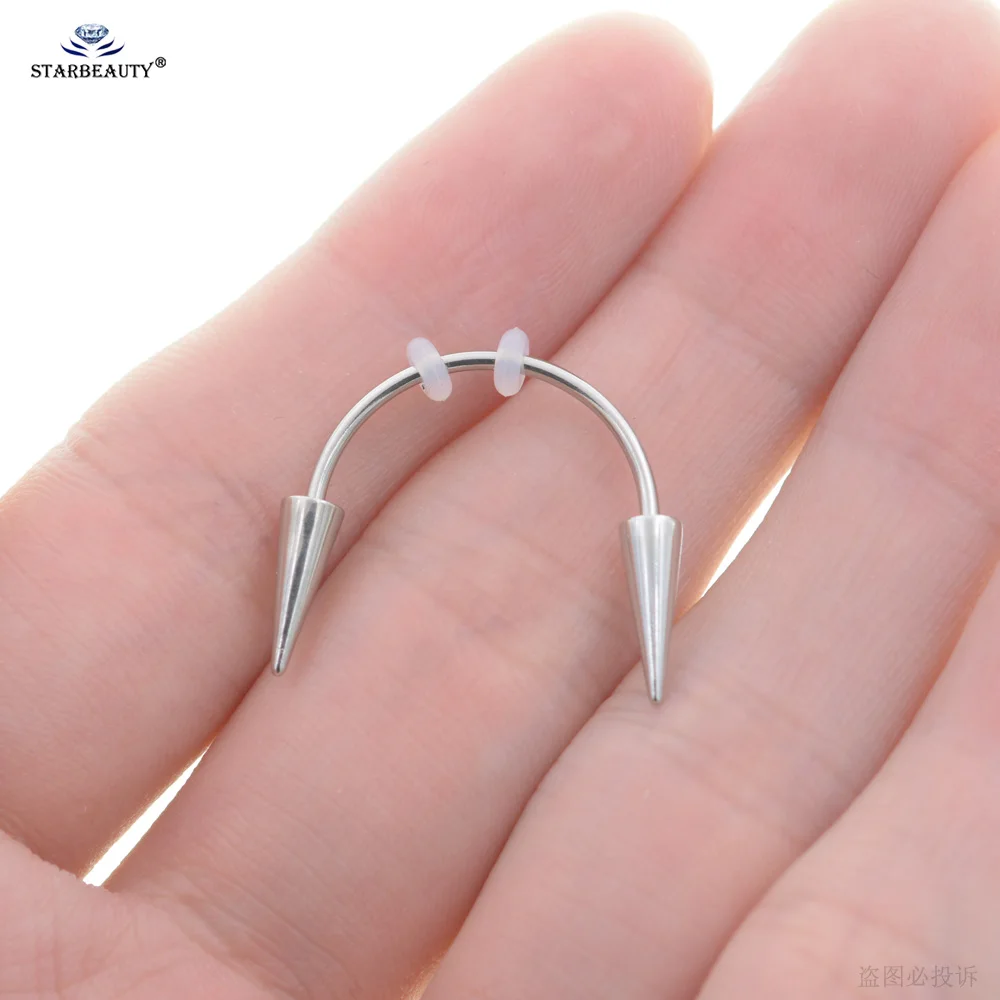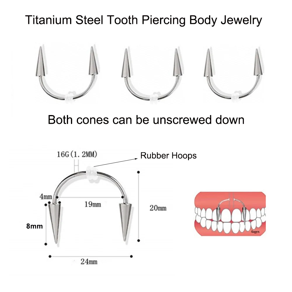 1 шт. 16 г стержень в форме Луны из титановой стали конус вампирский зуб пирсинг стоматологические решетки резиновый обруч спиральный пирсинг украшение зубы зомби ювелирные изделия для тела